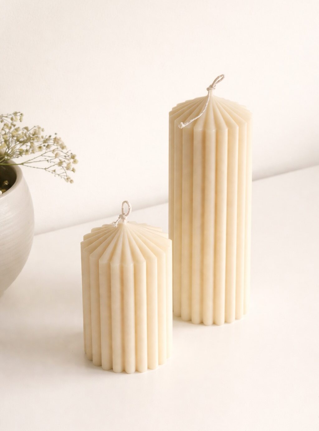 Elevate your living space with the timeless charm of the Ivory Pleat Duo Candles. Designed with a refined ribbed texture, these sculptural candles add a touch of understated elegance to any room. Their soft ivory tone blends seamlessly with modern, minimal, and cozy interiors, making them a versatile décor piece for homes, studios, or special occasions.