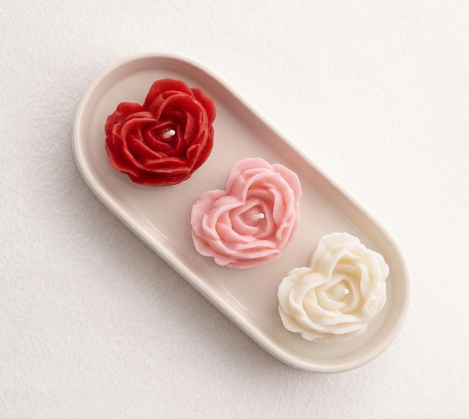 This elegant trio includes three timeless shades — passionate red, soft blush pink, and classic ivory white — perfectly arranged in a sleek ceramic tray for a refined presentation. Whether placed in the living room, bedroom, bathroom, or gifted to someone special.